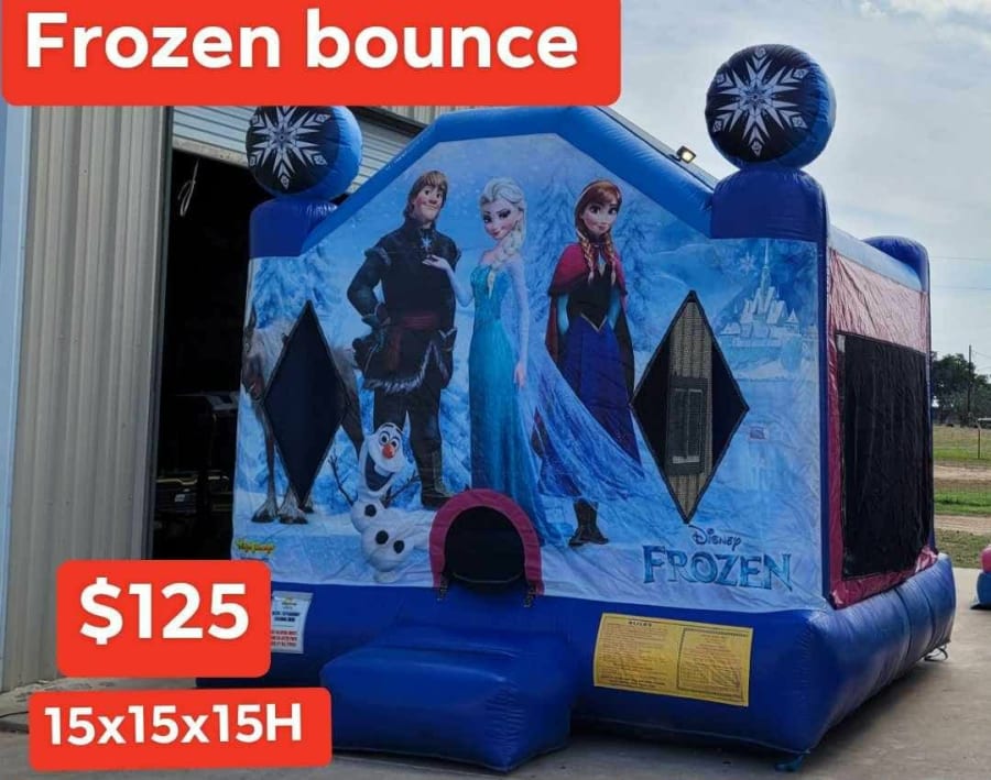 This Frozen bounce house brings a magical winter wonderland to your next event with this beautiful Frozen-themed moon bounce! Designed with vibrant icy blues, snowy details, and beloved Frozen-style characters, this inflatable instantly captures attention and creates an unforgettable centerpiece for birthday parties, school events, family gatherings, and special celebrations.